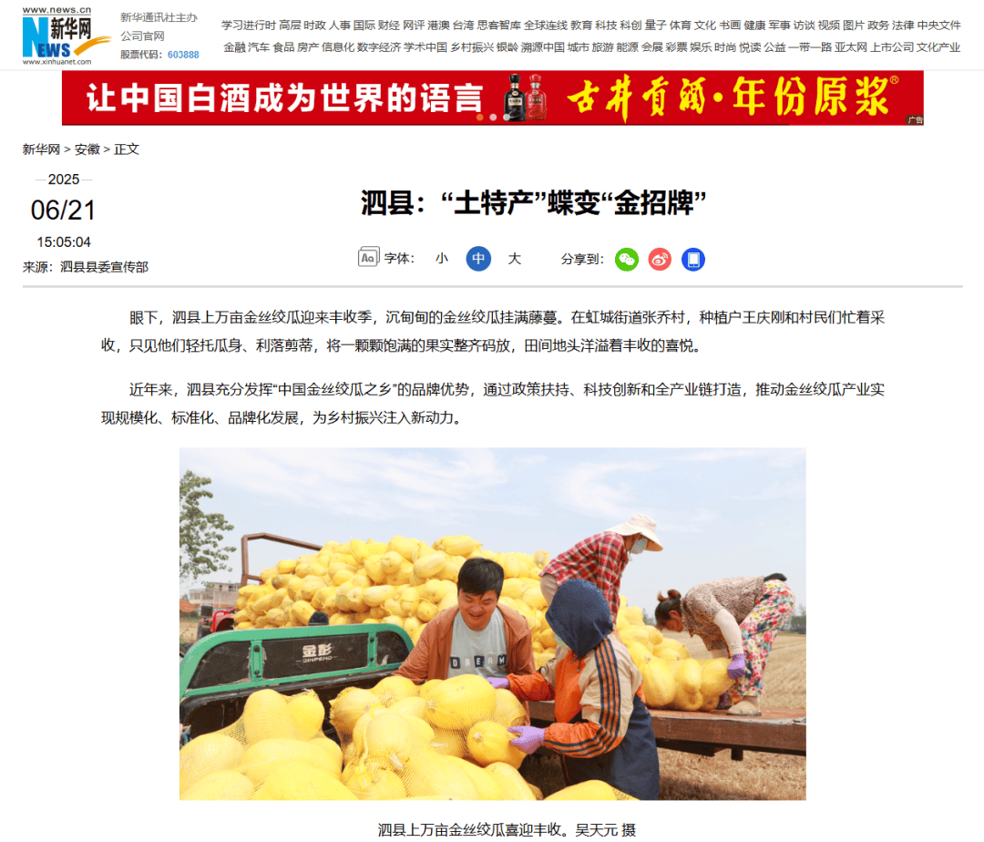 安徽日报头版报道安徽泗县正在隋唐大运河畔打制“运河茶馆”,以“平价茶饮+常态化文化表演”为焦点,融合品茶、倾听泗州戏及非遗表演、体验运河文化于一体。该茶馆采用“指导+市场运做”模式,成为展现处所特色、惠平易近消费、活化汗青回忆的文化新地标和文旅消费新场景。田间地头弥漫着喜悦。依托“中国金丝绞瓜之乡”品牌劣势,本地通过政策搀扶、科技赋能和全财产链打制,鞭策这一特色财产迈向尺度化、品牌化成长。从品种改良、聪慧种植到精湛加工,金丝绞瓜实现“七十二变”,价值链显著提拔,成为带动村落复兴的“金招牌”。