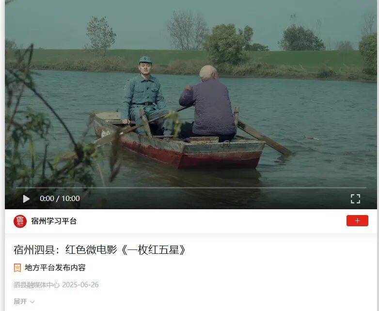 为留念抗日和平暨世界反和平胜利80周年,泗县细心创做红色微片子《一枚红五星》,活泼展示军平易近鱼水情深的动人故事,伟大抗和。正在干部群众中激发强烈热闹反应,成为泗县爱国从义教育的活泼教材。