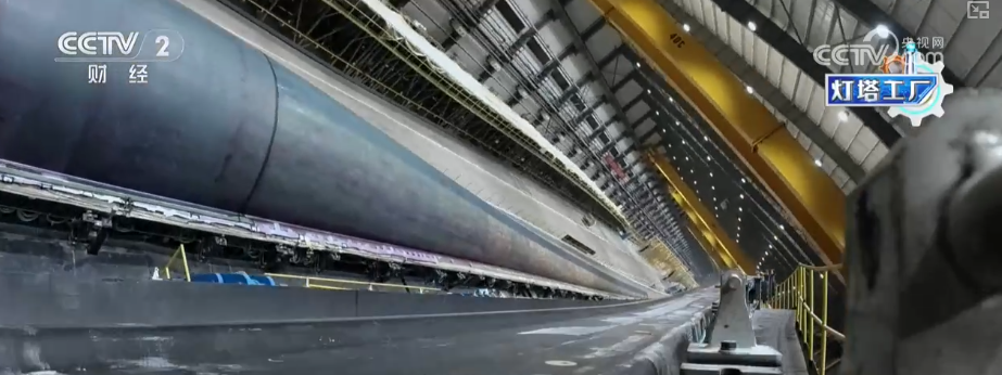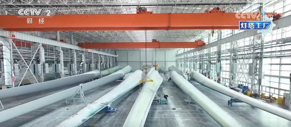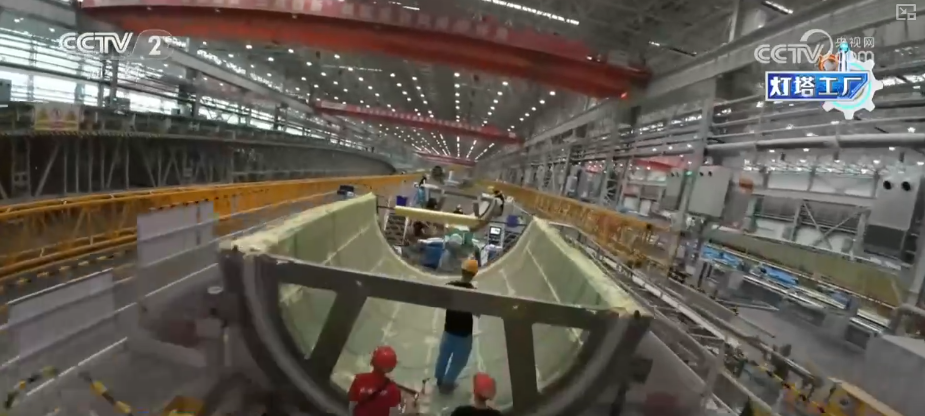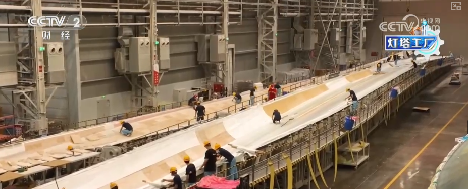 这里是湖南韶山这个的叶片工场,这个大师伙就是风机叶片。目前,这家“灯塔工场”最长能够出产118米的叶片。像如许的一只百米级叶片,出产时间也从本来的平均40多个小时,缩短到现正在的30个小时摆布。