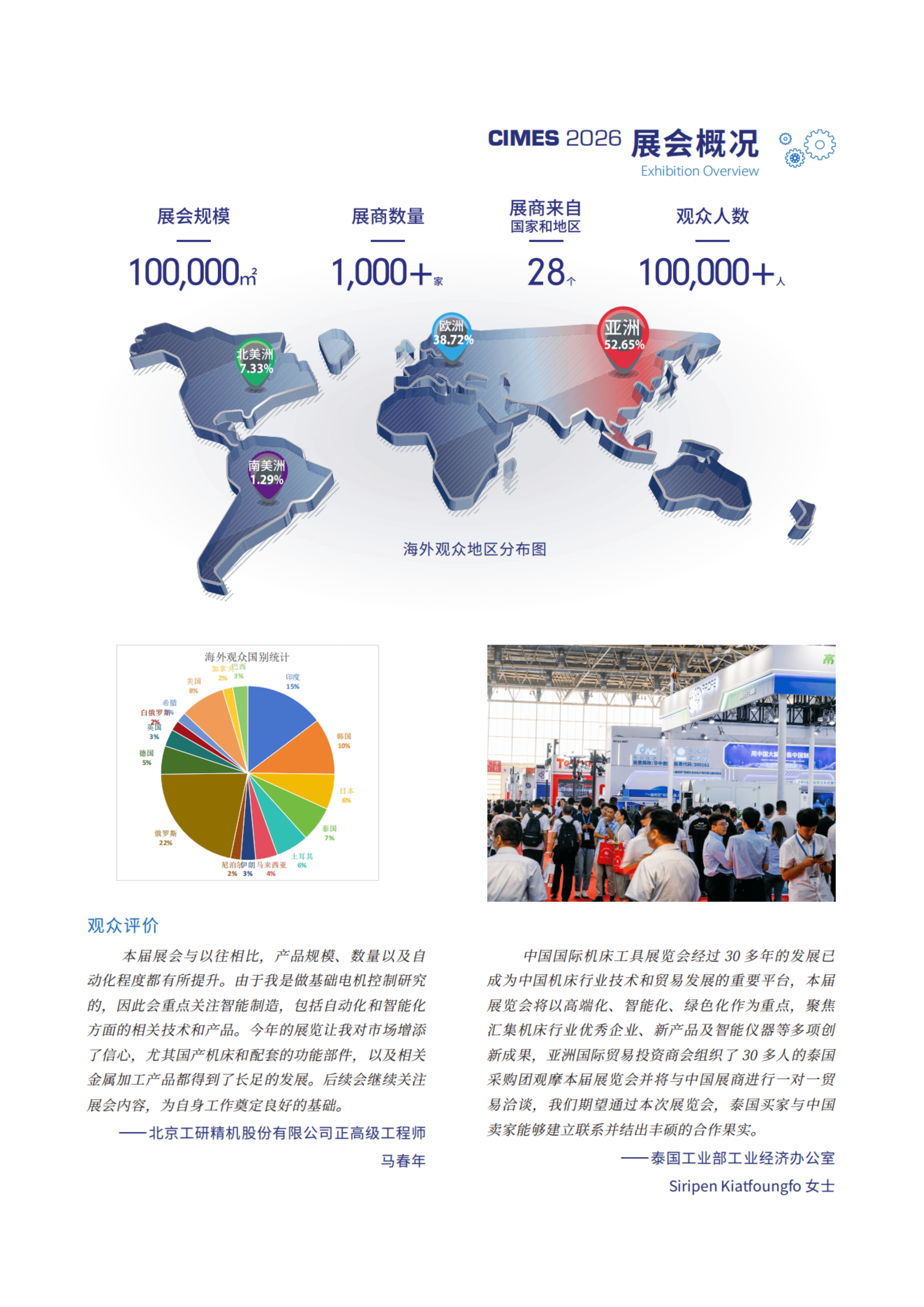 2026国际机床博览会(CIMES2026)是全球机床行业的嘉会,将于2026年5月25日至29日正在中国国际展览核心(顺义馆)昌大举办。做为中国最具影响力的国际工业母机财产博览会,CIMES自1992年开办以来,每两年举办一次,已成为全球第三大机床展会,汇聚全球顶尖机床企业,展现最前沿的制制手艺取智能化处理方案。展会估计吸引来自28个国度和地域的1300+家参展商,展览面积达12万平方米,专业不雅众超10万人次,是机床行业商贸合做、手艺交换、财产对接的最佳平台。